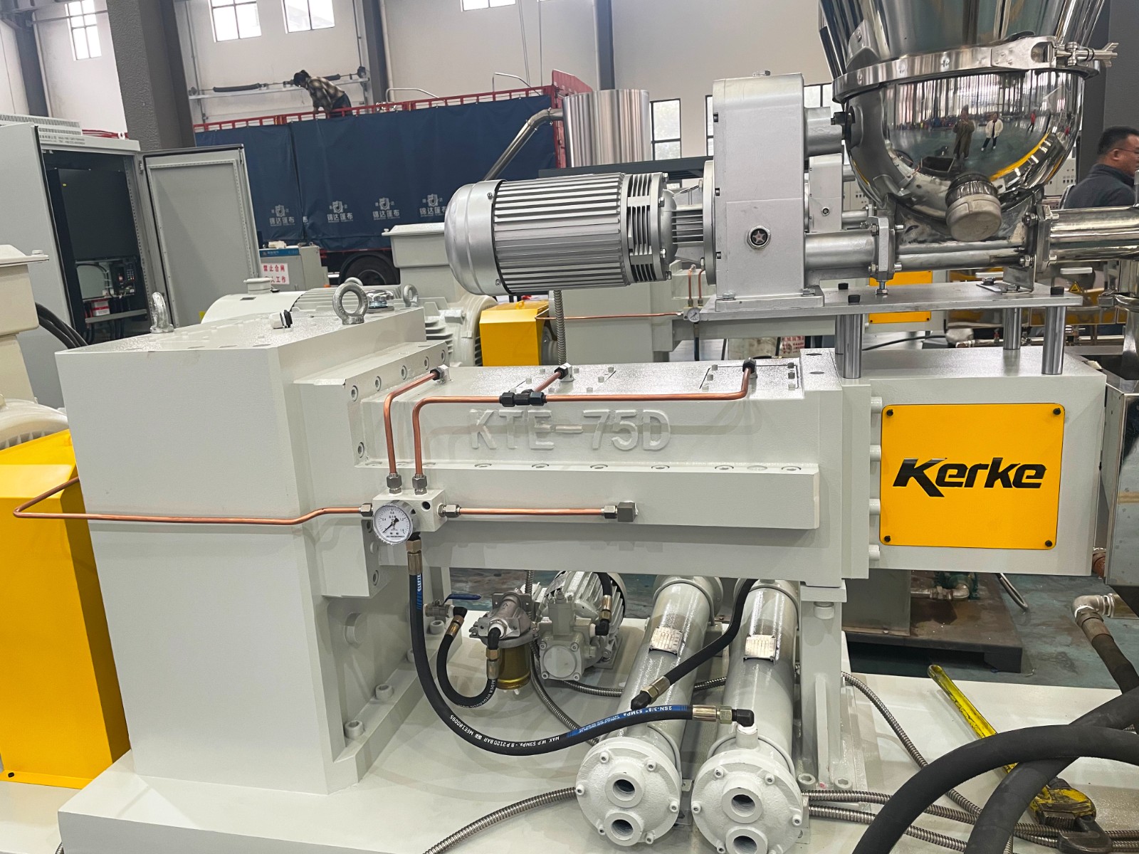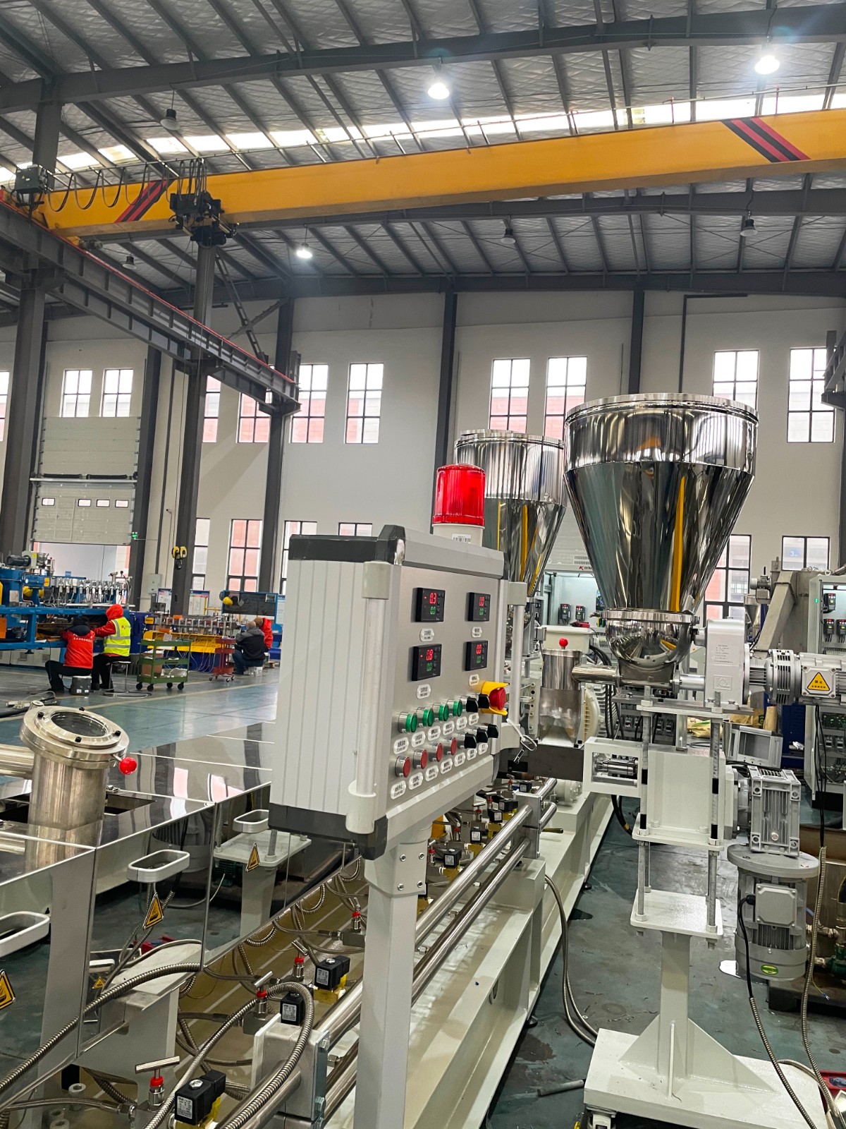 我們根據(jù)客戶的一些特殊需求和使用習(xí)慣以及科爾克豐富的現(xiàn)場經(jīng)驗(yàn)對整個雙螺桿配混改性生產(chǎn)線進(jìn)行優(yōu)化以及側(cè)邊增加錐雙喂料從而實(shí)現(xiàn)量身定制。目前交付的雙螺桿生產(chǎn)線在實(shí)現(xiàn)了高產(chǎn)量的前提下,并能可靠穩(wěn)定地運(yùn)行生產(chǎn)。